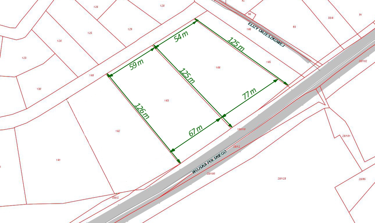 (numer działki przed aktualizacją ewidencji: Kompleks działek nr 143 i 144 w obrębie 153 - Powierzchnia: 16.000 m2 (każda z działek o pow. 8.000 m2)