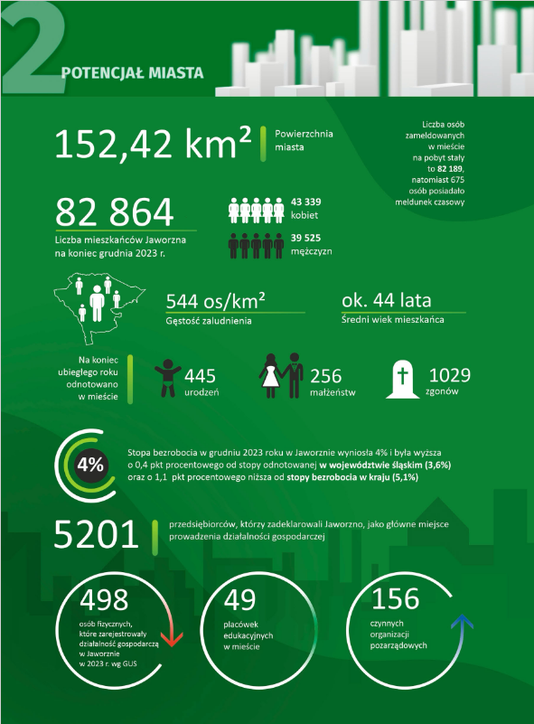 Niegdyś – wraz z Chrzanowem i Trzebinią – Jaworzno tworzyło Jaworznicko-Chrzanowski Okręg Przemysłowy. Dzisiaj miasto jest ogniwem na styku Górnośląsko-Zagłębiowskiej Metropolii (w której skład nie wchodzi) i Krakowskiego Obszaru Metropolitalnego. To u nas górnośląska pracowitość przenika się z małopolską kreatywnością. Jesteśmy z tego powodu dumni.
